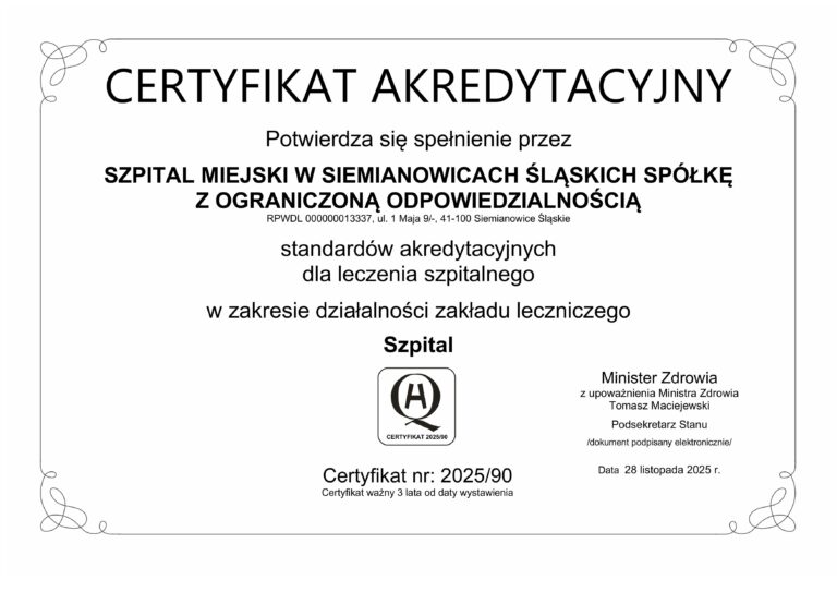 Poniżej przedstawiamy Państwu listę posiadanych certyfikatów przez szpital: